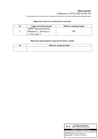 Общество с ограниченной ответственностью «СЕРВИС ТО» внесено в реестр операторов технического осмотра за №8102. По номеру оператора, указанному в аттестате, можно проверить аккредитацию на сайте РСА.